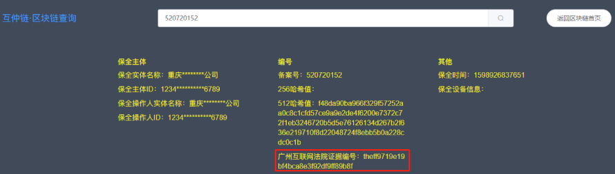 1先通过证据编号在其他区块链节点查询到互联网法院证据编号;